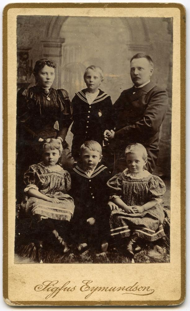 Þórhallur Bjarnarson biskup, kona hans Valgerður Jónsdóttir og 4 börn