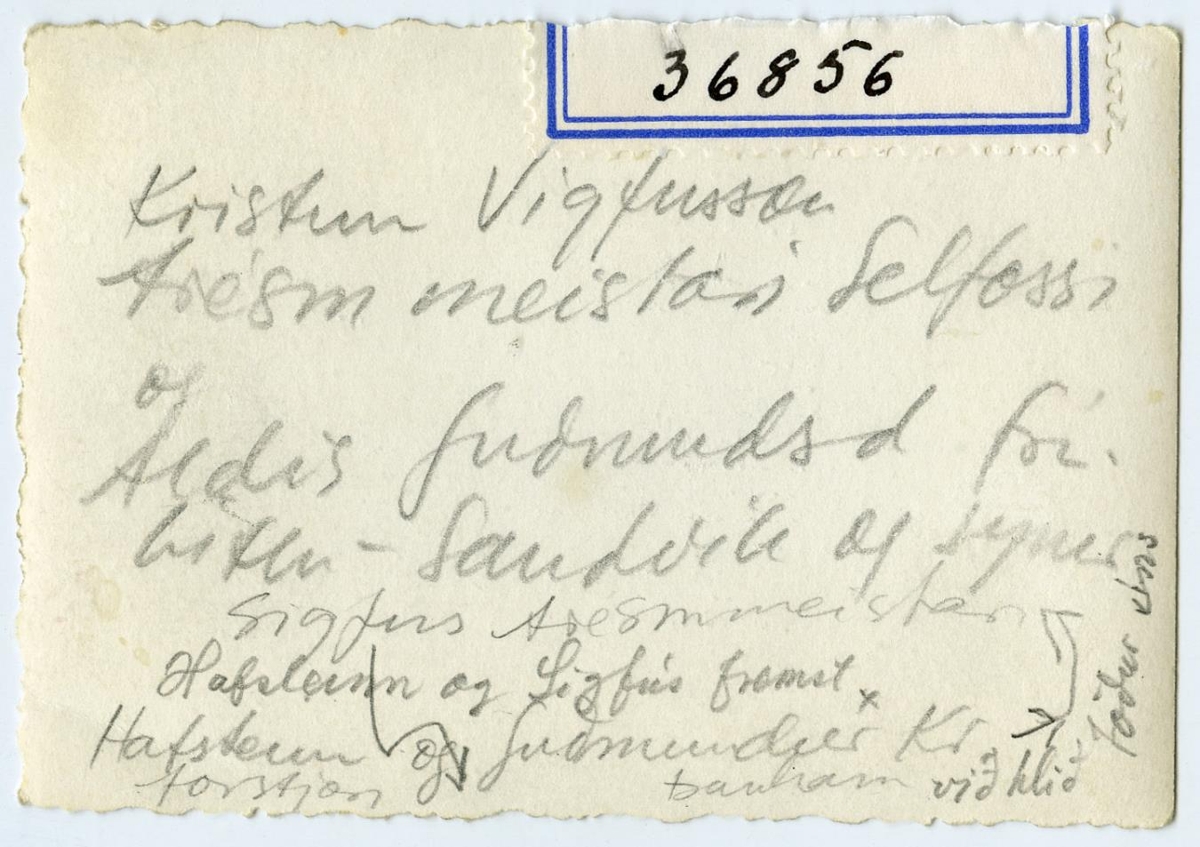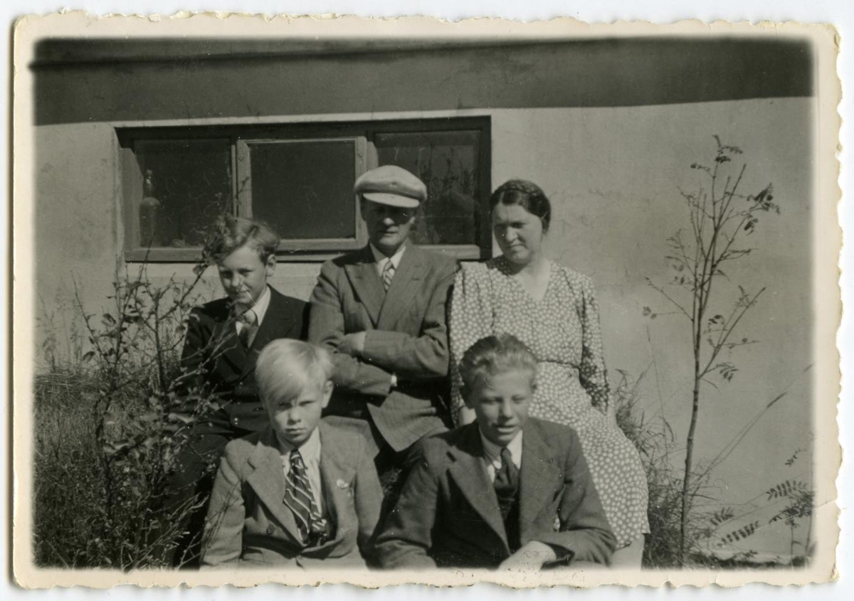 Kristinn Vigfússon trésmiíðameistari, Selfossi, k.h. Aldís Guðmundsdóttir frá Litlu-Sandvík og synir þeirra Sigfús trésmíðameistari, Hafsteinn forstjóri og Guðmundur bankamaður. Ljósm. 6 x 9 cm: