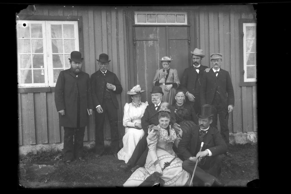 Hópmynd. Hópmyndir af þessum Benedikt Kristjánsson prófastur frá Múla og kona hans Elínborg Friðriksdóttir, börn hennar, Jón Vídalín konsúll og Kristín Jacobson, makar þeirra, Helga Vídalín [Bryde] og Jón Jacobson landsbókavörður, mágur hans, Einar Jónsson, prófastur á Hofi, Jón Jónsson alþm. á Sleðbrjót.