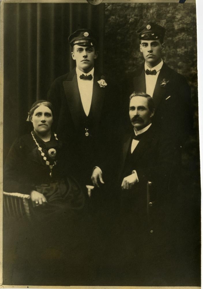 og enn fremur þriðja myndin af gefanda, konu hans og sonum þeirra, Ragnari