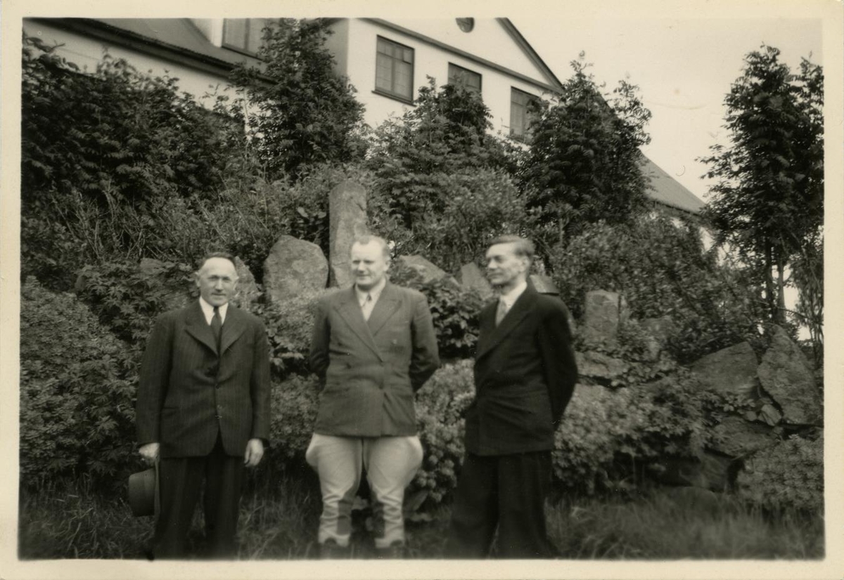 3 menn. Frá v. Guðmundur Jónsson skólastjóri, Hvanneyri, Pétur Gunnarsson ráðunautur, Ljósm. 6 x 8,5 cm: