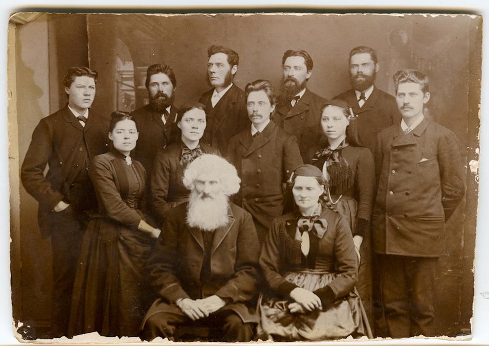 K.h. Ingibjörg Eiríksd. og 10 börn þeirra. Ljósm. cab. Hópmynd, Eggert Briem, sýslumaður á Espihóli, k.h. Ingibjörg Eiríksdóttir og 10 börn þeirra, sbr. nöfn á fylgiblaði.- Efirtökufilma fylgir.