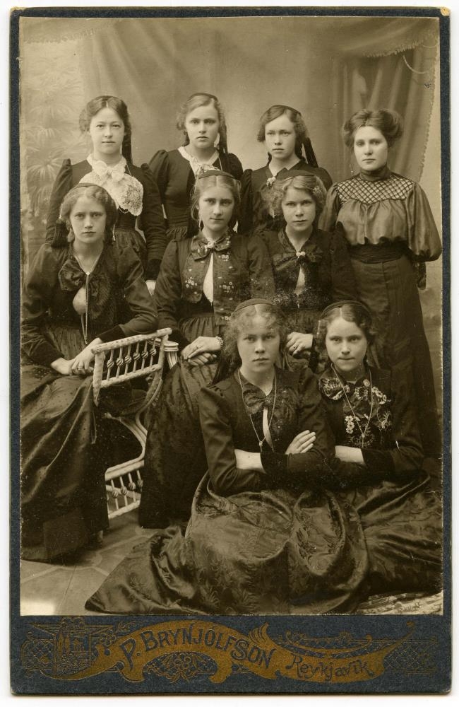 Efsta röð f.v. Stefanía Steinunn Jósefsdóttir, Ragnheiður Jónsdóttir, Þórdís Ásgeirsdóttir og óþekkt kona sem er sögð heita Guðrún Guðmundsdóttir. Miðröð f.v. Jónína Kristín Samúelsdóttir, Margrét Jónsdóttir og Ragnheiður Magnúsdóttir Blöndal. Neðsta röð f.v. Júlíana Sveinsdóttir og Ingibjörg Pálína Stefánsdóttir.