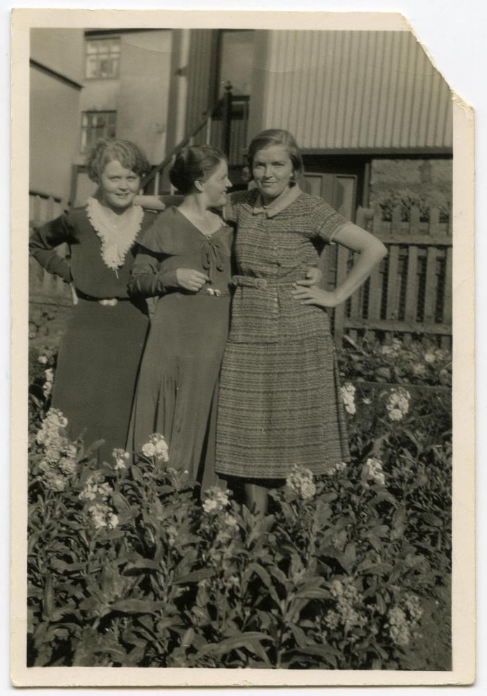 Hópm. Ljósm.(amatörm): 9 x 6 cm. Ljósm. (amatörm.): 9 x 6 cm: Sesselja og Guðríður Stefánsdætur og ónafngr.stúlka.