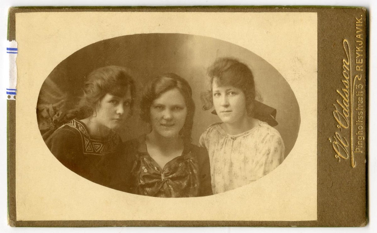 Hópmynd, 3 stúlkur. Ingileif Árnadóttir prests Jónssonar,