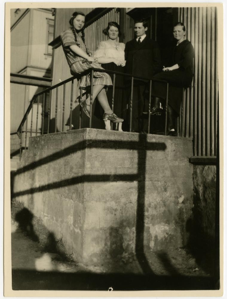 4 sam. á húströppum. Ljósm.(amatörm.) Ljósm. (amatörm.) 11 x 8,5 cm: