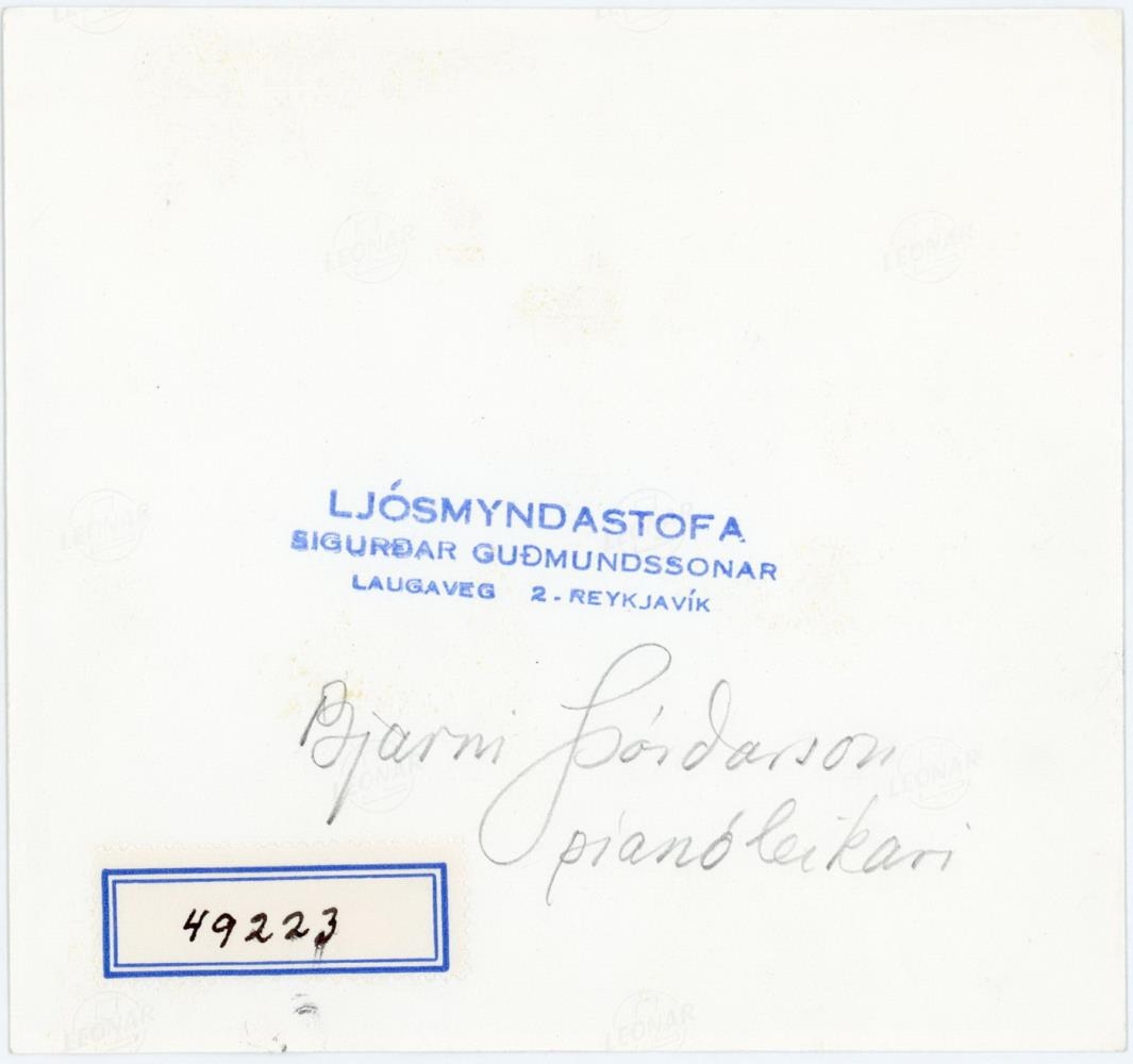 Bjarni Þórðarson, píanóleikari og stórkaupmaður í Reykjavík.