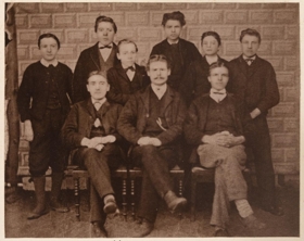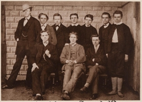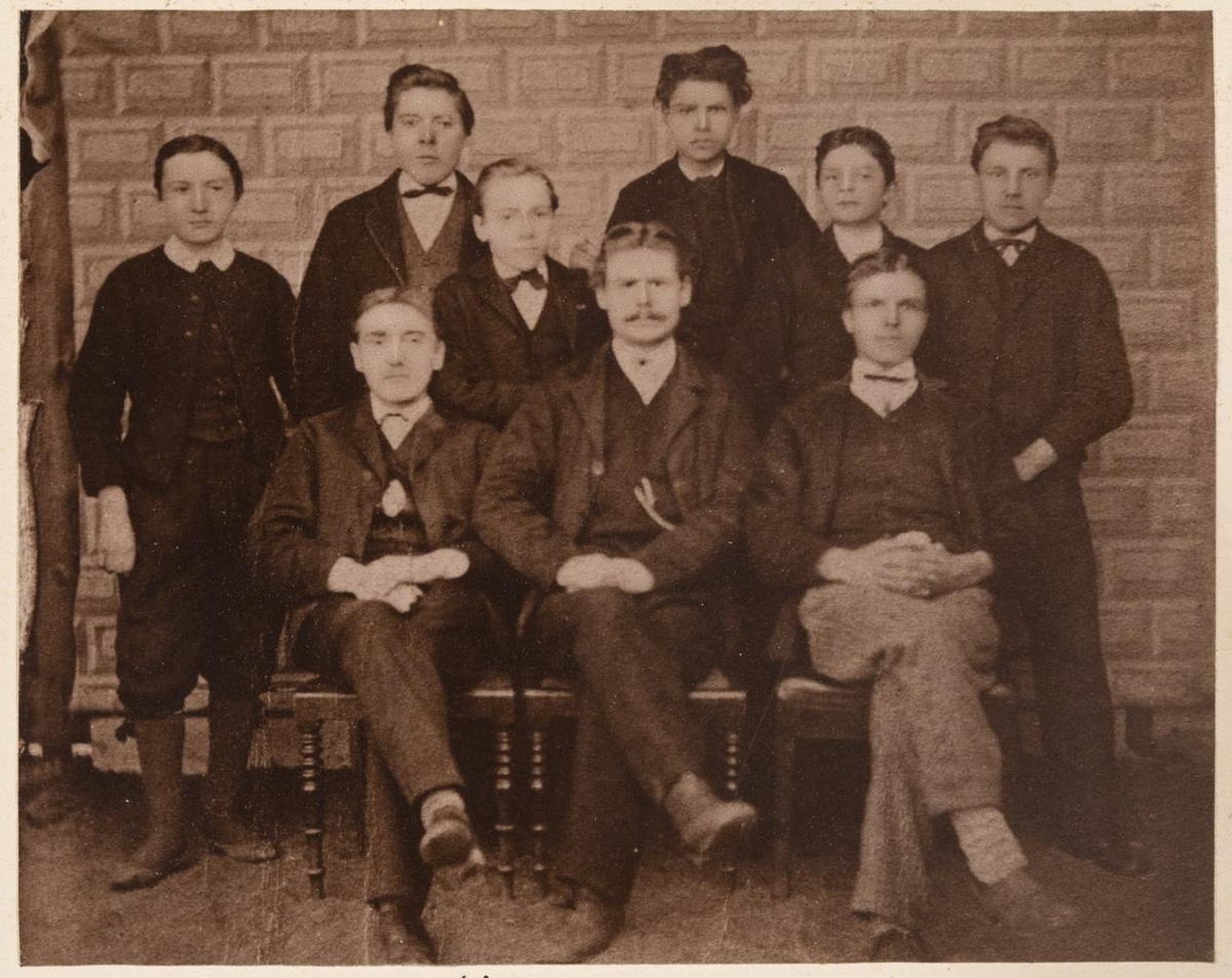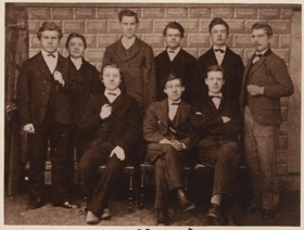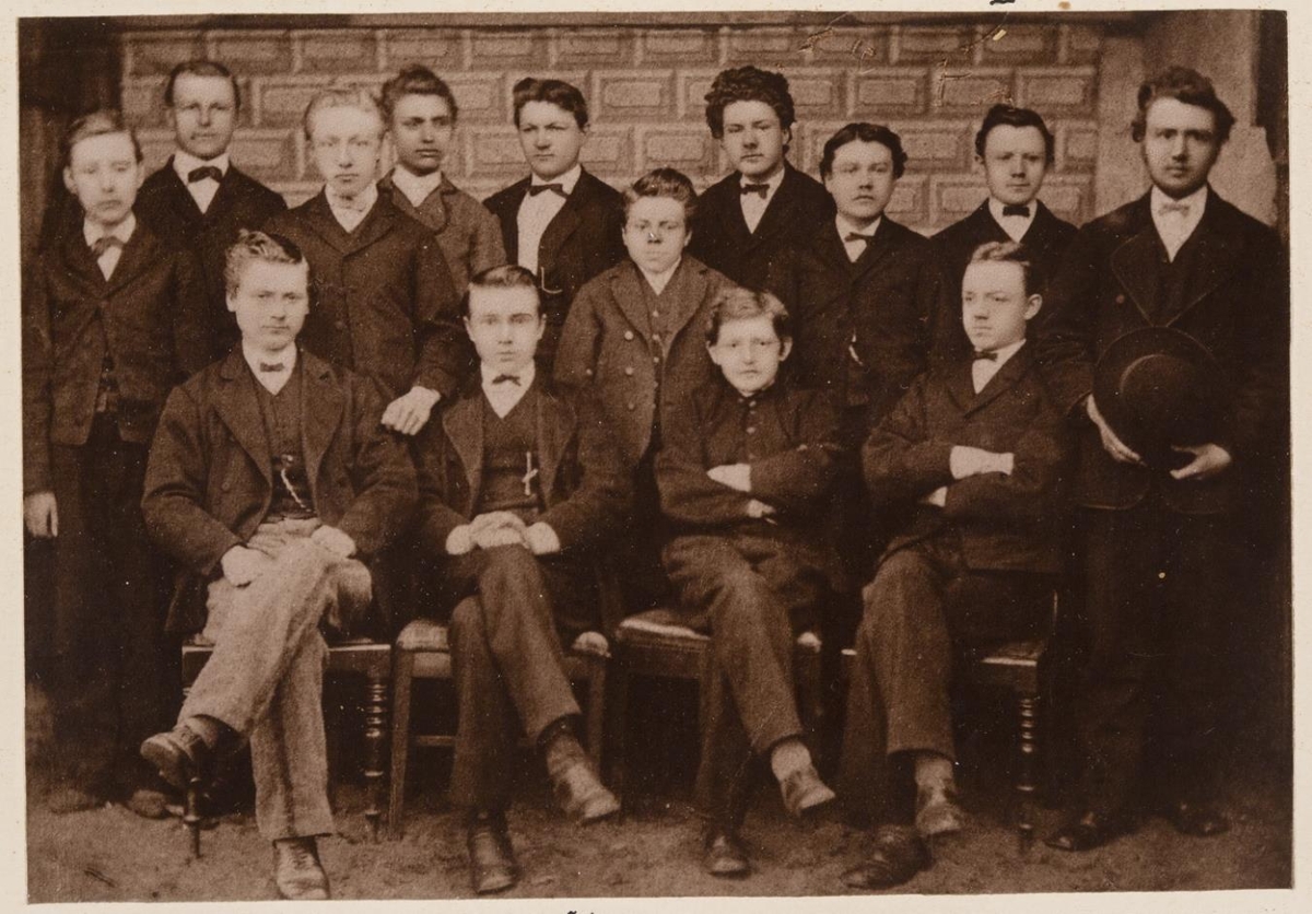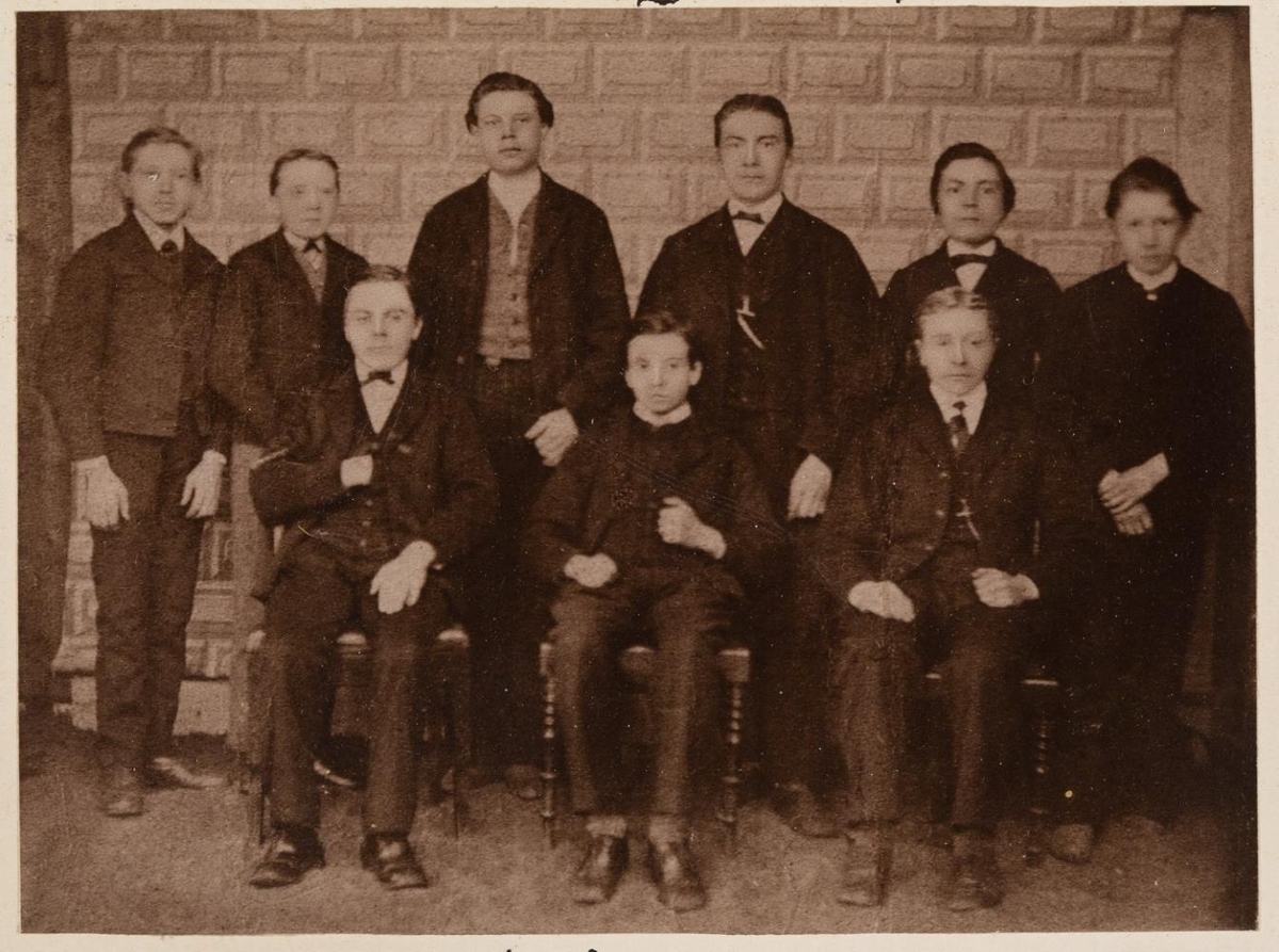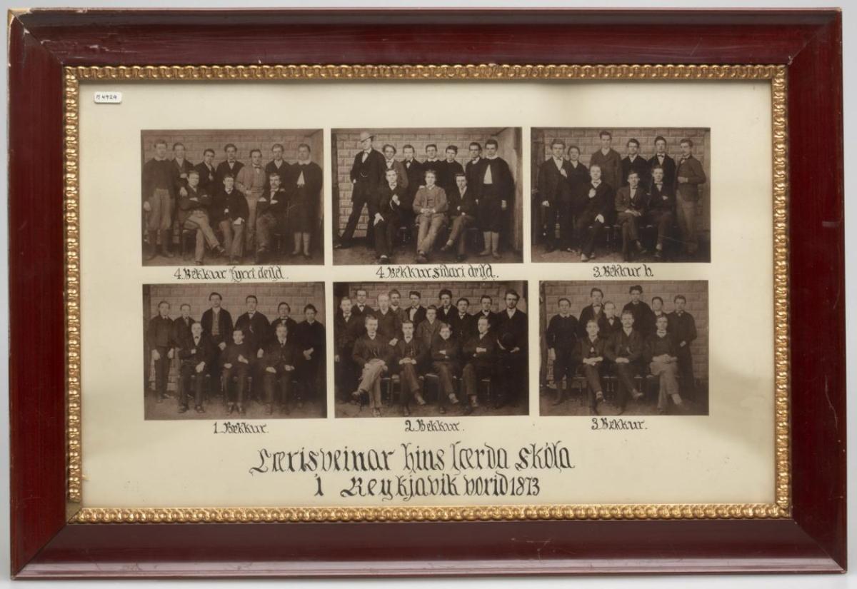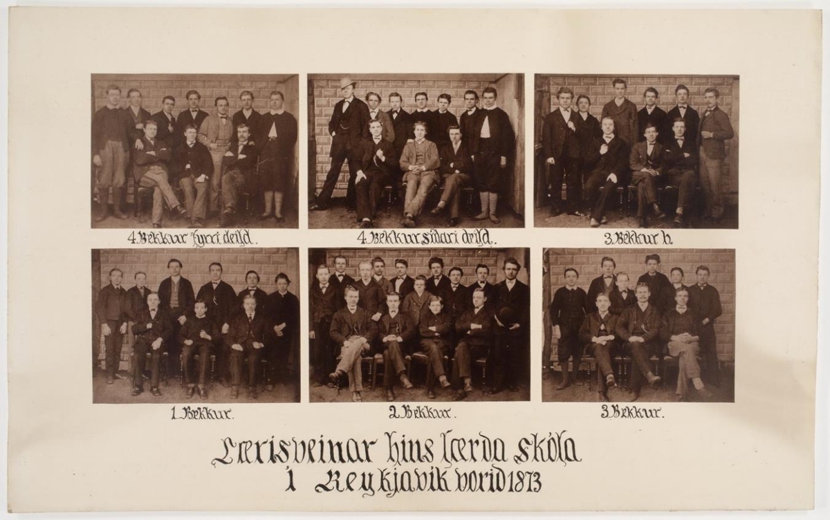 Hópmynd. Ljósmyndir 6, stækkaðar eftir eldri myndum, minni, af öllum bekkjum, 6, lærðaskólans í Reykjavík vorið 1873.