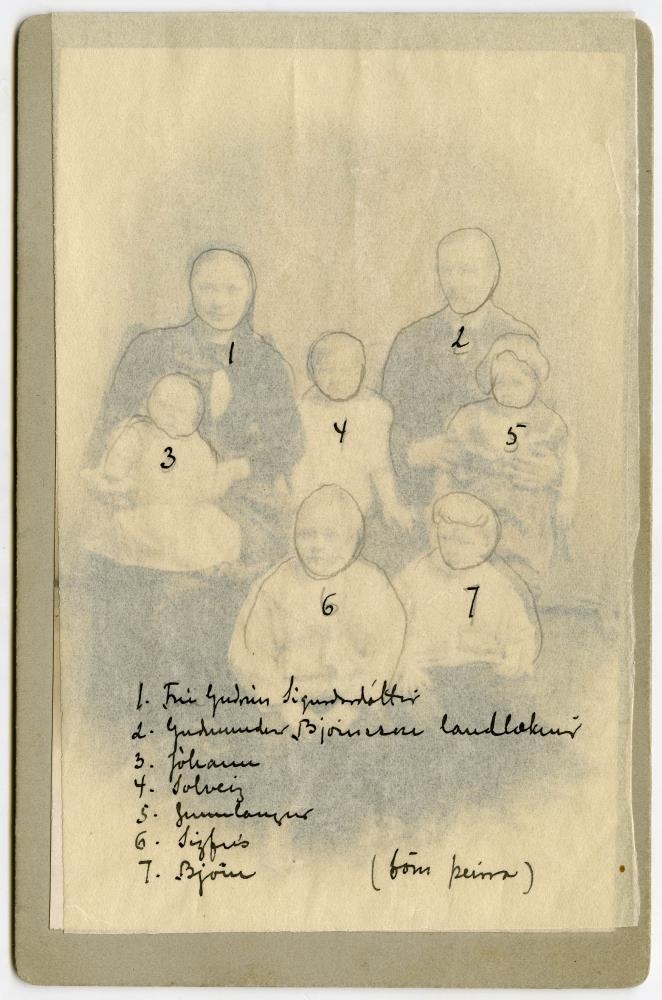 kona hans, Guðrún Sigurðardóttir og börn þeirra, Jóhann, Sólveig, Gunnlaugur,