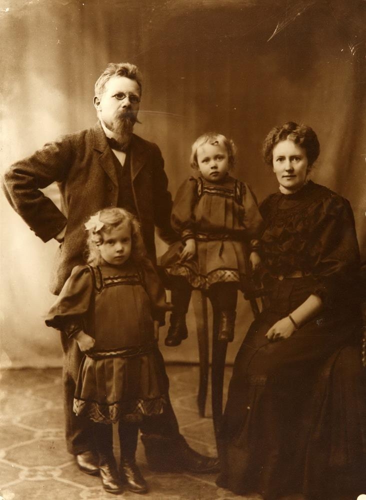 málari, kona hans, Sigríður Snæbjarnardóttir, og dætur þeirra tvær.