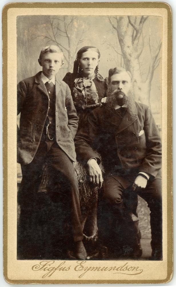 Séra Ólafur Ólafsson í Arnarbæli, kona hans, Guðríður Guðmundsdóttir og Guðmundur, sonur þeirra.