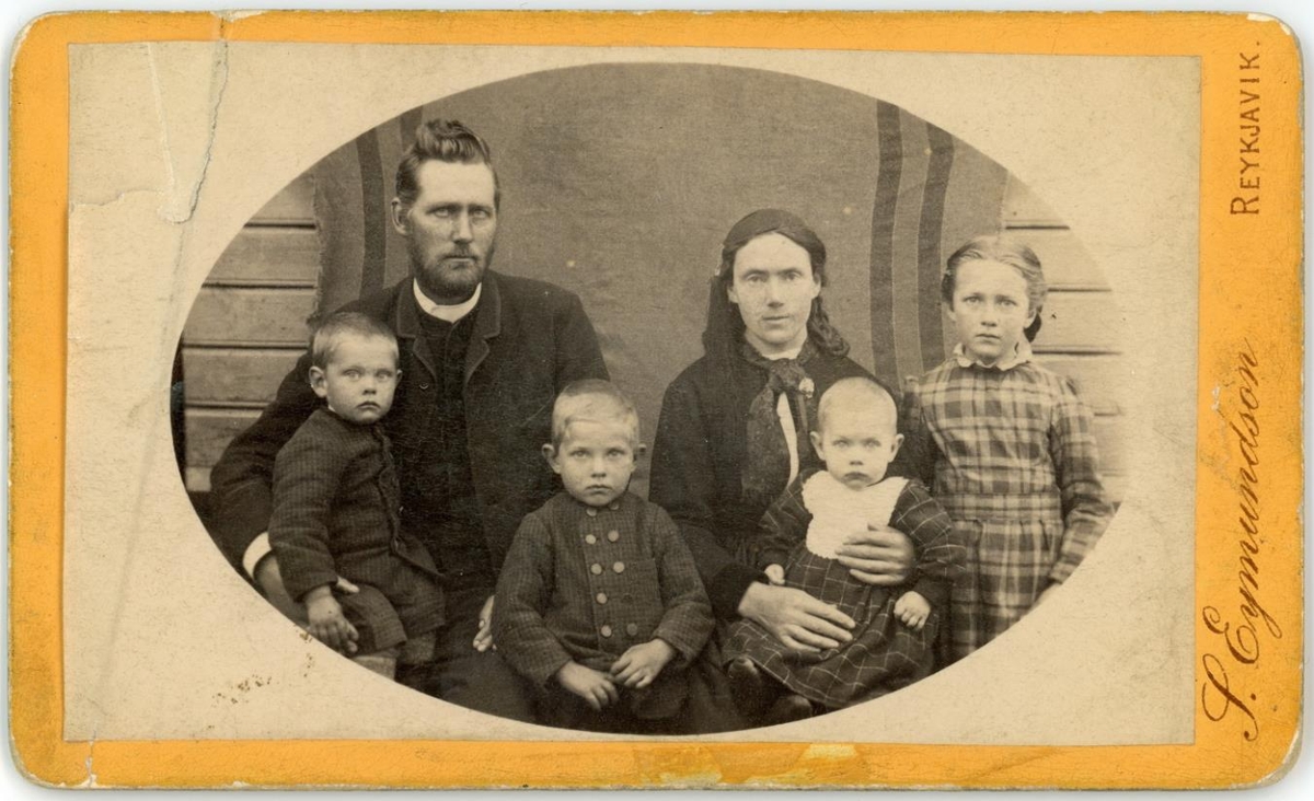 Sigurður Eiríksson regluboði, kona hans, Svanhildur Sigurðardóttir, og 4 börn þeirra, Sigríður Sigurðardóttir, Sigurgeir Sigurðsson síðar prestur á Ísafirði, Sigurður Sigurðsson, síðar búfræðingur og Sigrún Sigurðardóttir.