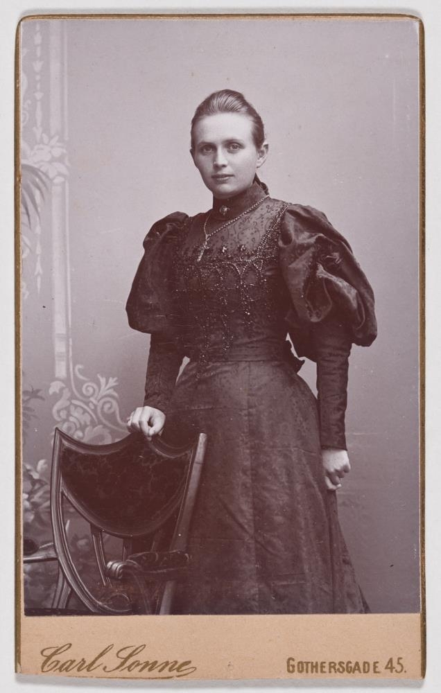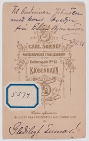 Elín Bjarnason, f. Hafstein, kona Lárusar H. Bjarnason. Á bakhlið er kveðja frá Elínu Bjarnason dagsett 3/5.1896.