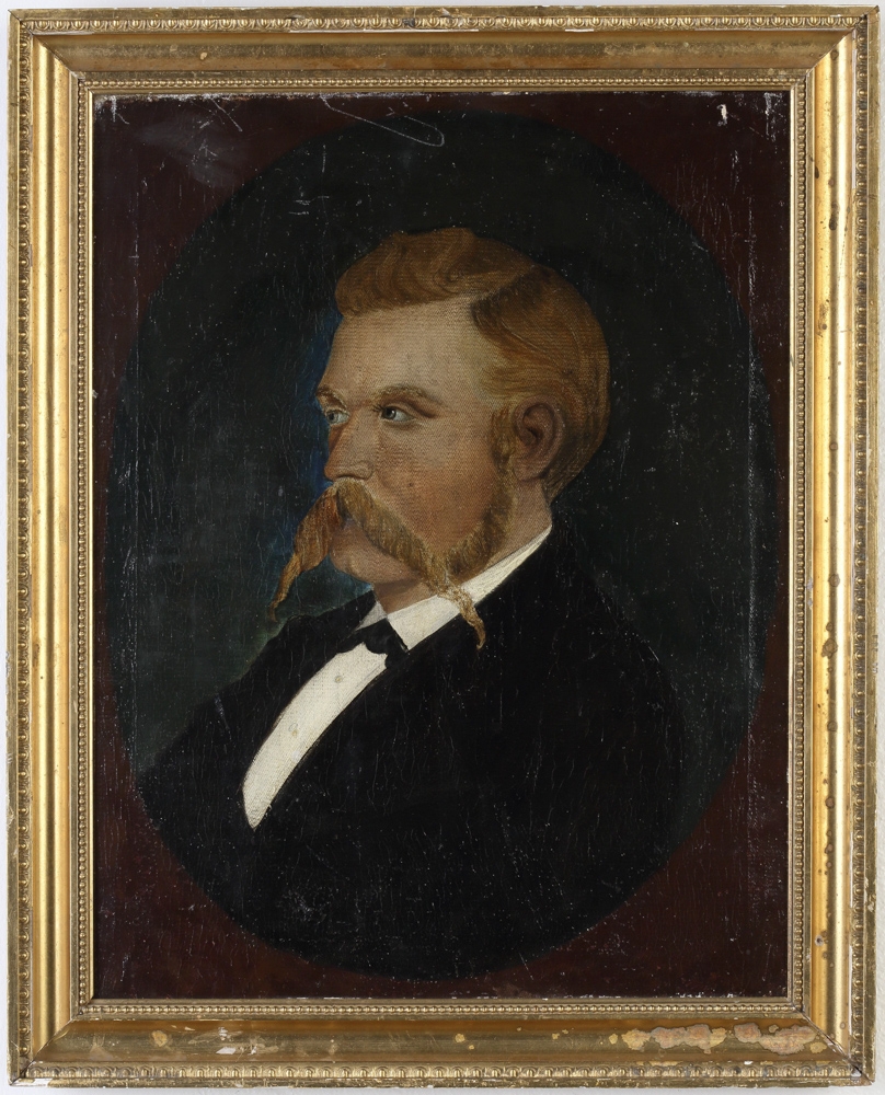 Stefán Þórarinsson gullsmiður Akureyri, olíumáluð mynd, stærð 45,5 x 34,7, eftir Arngrím málara Gíslason. Er varla fullgerð, og hefir skemmst nokkuð.