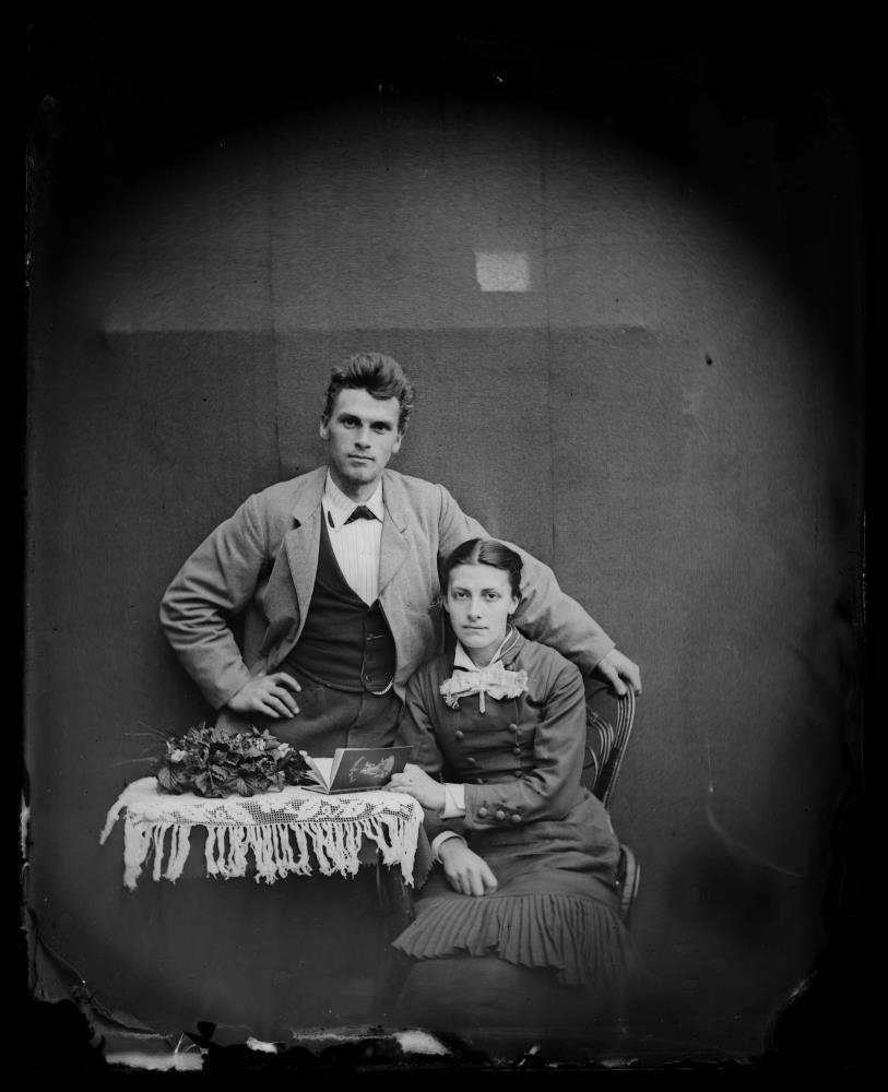 WP (wetplate) Með manni. Axelína Jóhanna Tulinius og sennilega bróðir hennar Carl Andrés Tulinius.