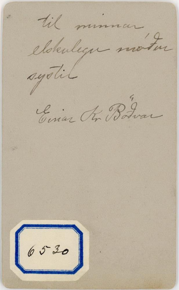 Aftan á mynd er skrifað „Til minnar elskulegu móðursystir -Einar Kr Böðvar“.