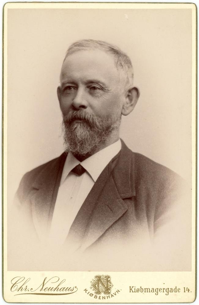 Jens Jakob Benedictsen, skipstjóri, og síðar bóndi á Sjálandi; myndin tekin á afmælisdegi hans 29.04.1893, er hann var sextugur; var sonarsonur Boga sagnfræðings Benediktssonar á Staðarfelli, fæddur á Ísafirði, sonur Jens Jakobs eldra (d.1842).
