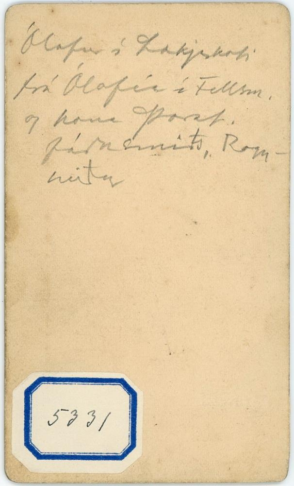Ólafur Ólafsson í Lækjarkoti, Reykjavík, og dætur hans 2, Ragnheiður (kona Þorsteins járnsmiðs Tómassonar) og Ólafía (kona sjera Ófeigs Vigfússonar í Fellsmúla).