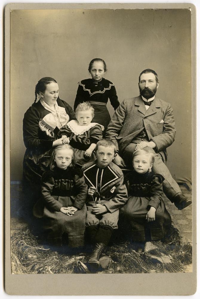 Einar Markússon, ríkisbókari, kona hans Kristín Árnadóttir, og börn þeirra 5, Helga, Markús, Sigríður, Elísabet og Sigurður.