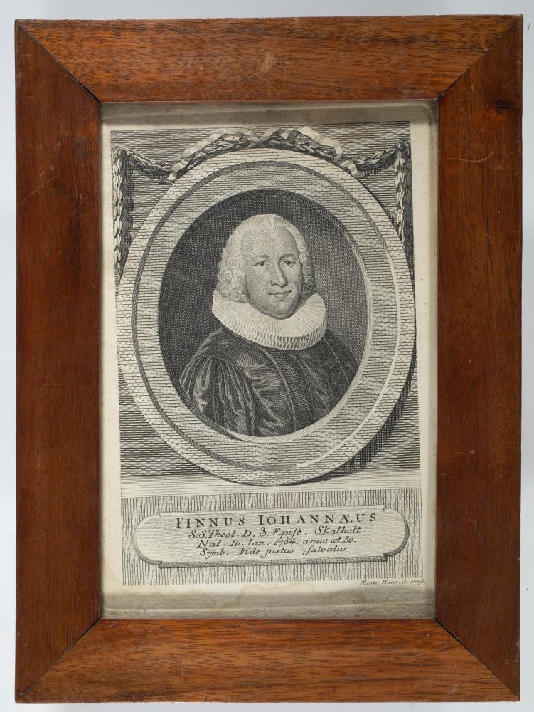 eirstungumyndin eftir Mens Haas 1748, stærð 16,8 x 11,1, í mahógnýklæddri