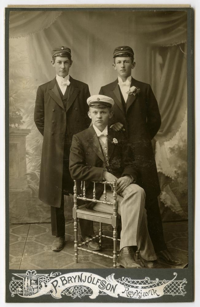 3 saman. Pétur Halldórsson, Sveinn Valdimar Sveinsson og Ólafur Pétur Pétursson frá Hrólfsskála, - stúdentar.