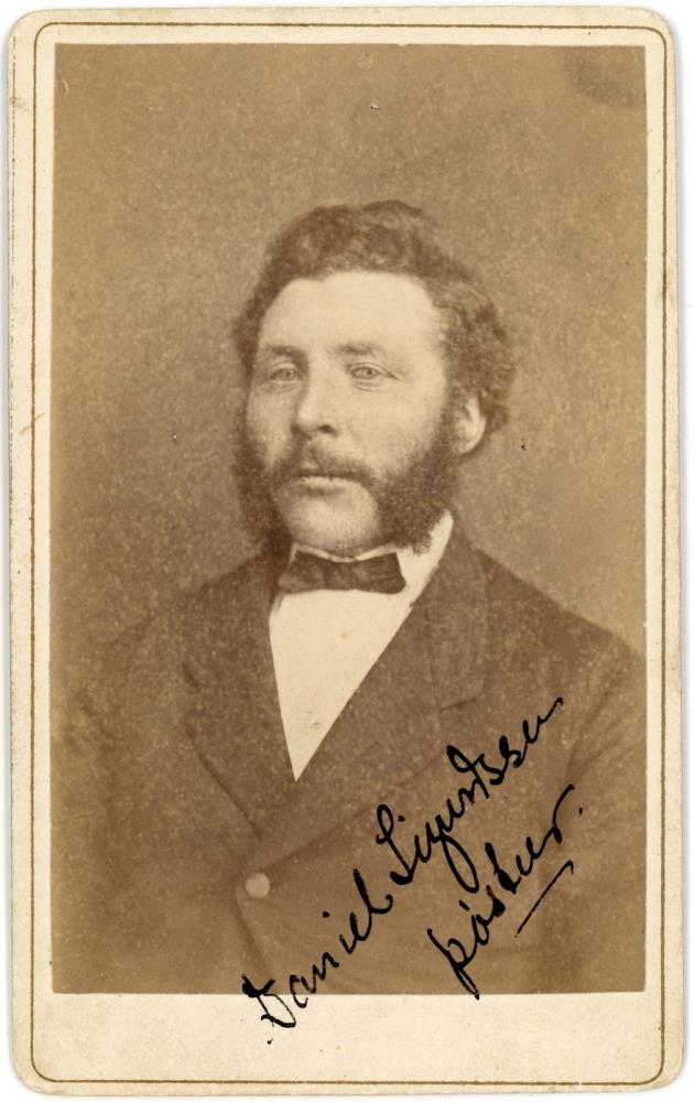 Á bakhlið myndarinnar er skrifað: „Daníel frá Steinsstöðum. Þessa mynd á jeg með öllum rjetti, Maja“.