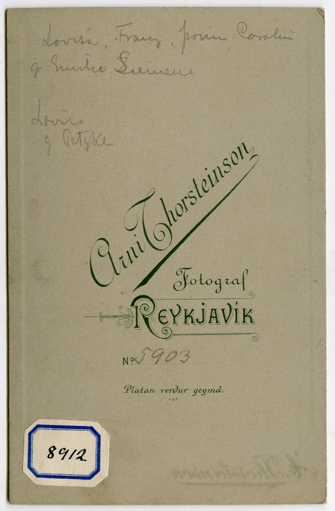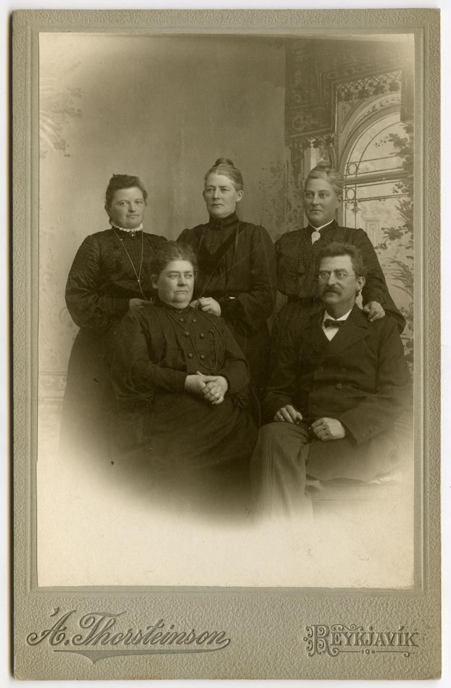 hans, Þórunn Árnadóttir (Thorsteinson), og 3 systur hans, Karólína Jónassen,