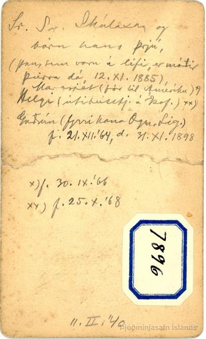 Séra Sveinn Skúlason og börn hans 3, Margrét, Helgi sem síðar var útibússtjóri á Ísafirði, og Guðrún, er var fyrri kona Ögmundar skólastjóra Sigurðssonar.