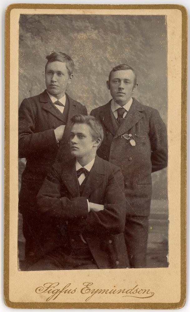 Ólafur Möller, Guðmundur Bjarnason klæðskeri og Eggert Eiríksson Briem, nemendur í Lærða skólanum.