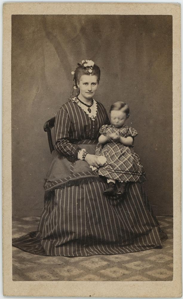 Nielsina Sophie Jensen f. Havsteen, með dóttur sína barnunga, Önnu Maríu er varð seinni kona Kristinns Havsteens, kaupmanns í Kaupmannahöfn. Eiginmaður Nielsinu og faðir Maríu var Jakob Christian Jensen, bakari á Akureyri.
