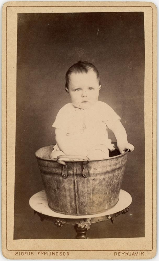 Lítið barn ofan í bala.