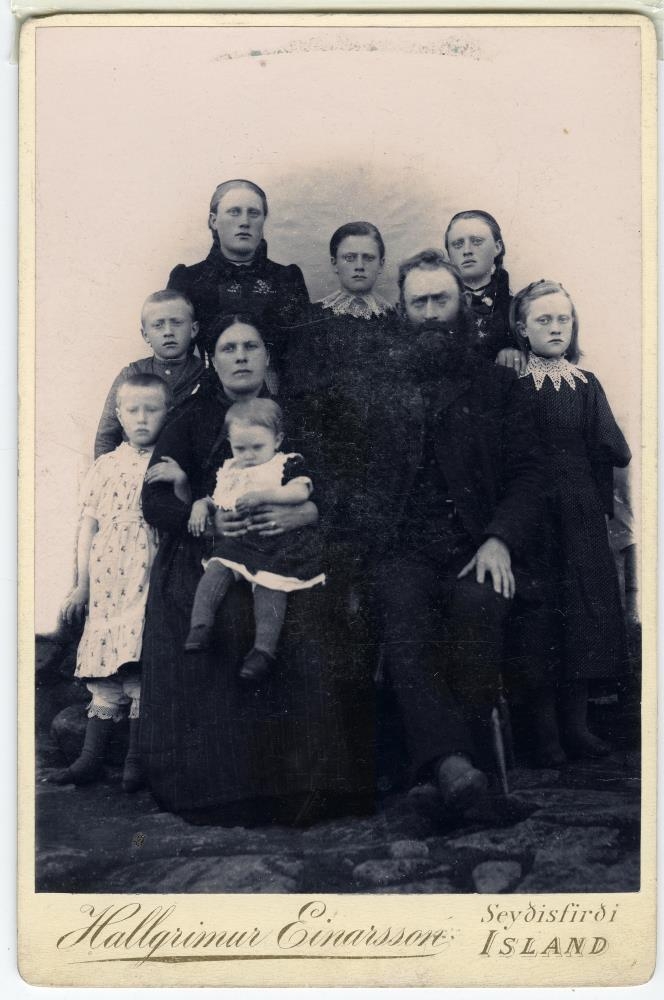 „Á myndinni eru sjö elstu bórn þeirra Hildar og Jóns (eignuðust 9). Anna Guðrún Jónsdóttir f. 1879, Þorbjörg Jónsdóttir f. 1881, Ása Norðfjörð Jónsdóttir f 1883, Guðrún Jónsdóttir f 1886, Árni Stefán Jónsson f 1889, Sigríður Jónsdóttir f 1891, Kristveig Björg Jónsdóttir 1895. Ásmundarstaðir eru á Melrakkasléttu.“ (ÆPE 2025)