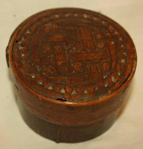 dumbrauðum lit líkt og askja no. 333. Þessi litla askja er útskorin