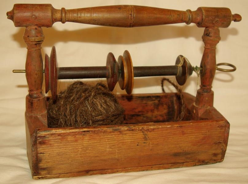 rendum súlum og haldi, rauðmálaður. Í honum er hrossahárshnykill