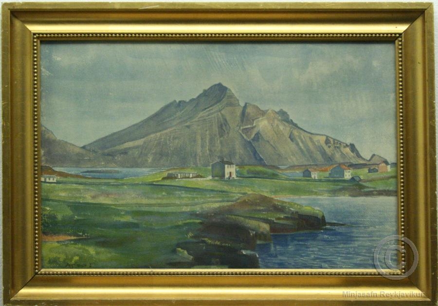 Eftirprentun undir gleri eftir vatnslitamynd frá Horni, Hornafirði, eftir Ásgrím Jónsson.