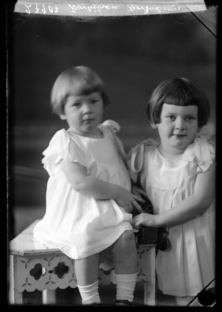 „Ég tel mig geta sagt til um hvað telpan á myndinni heiti ef ég sé myndina. Hún er dóttir Þorbjörns Þórðarsonar, afa míns, en hann og fjölskyldan bjuggu að Spítalastíg 8 þegar myndin var tekin. Telpan er annað hvort Halla (1929-2016) eða móðir mín Steina Þóra (1931-1996).“ „Mynd 1: Steina Þóra (1931-1996) er sitjandi vinstra megin og Halla (1929-2016) stendur. Þær eru Þorbjörnsdætur. Mynd 2: Steina Þóra (1931-1996) í fangi föður síns, Þorbjörns Þóðarsonar.“ (ÞKH 2020)
