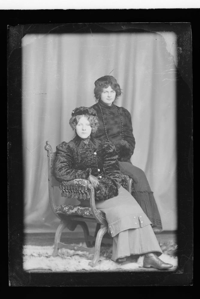 „Til vinstri er sennilega Guðríður Jóhannsdóttir g. Klerk (1882-1969). Flutti til Danmerkur.“ (SBBP 2023)