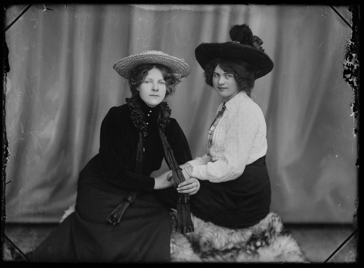 „Til vinstri er sennilega Guðríður Jóhannsdóttir g. Klerk (1882-1969). Flutti til Danmerkur.“ (SBBP 2023)